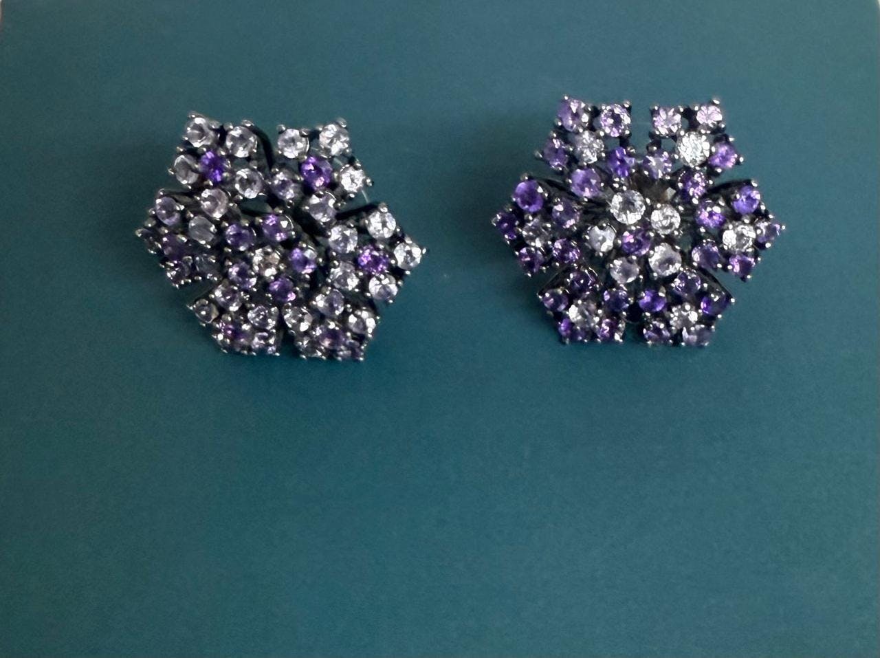 These exquisite amethyst flower studs feature an intricate design, making them the perfect addition to your collection.