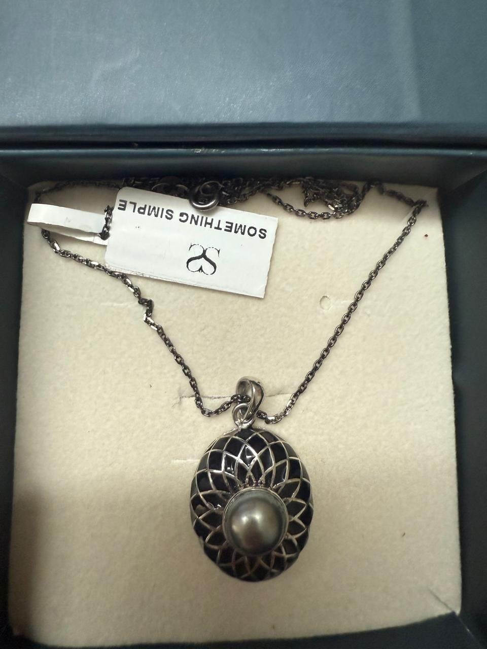 Enhance your style with a French enamel Tahitian pearl pendant —a timeless touch of monochromatic elegance.