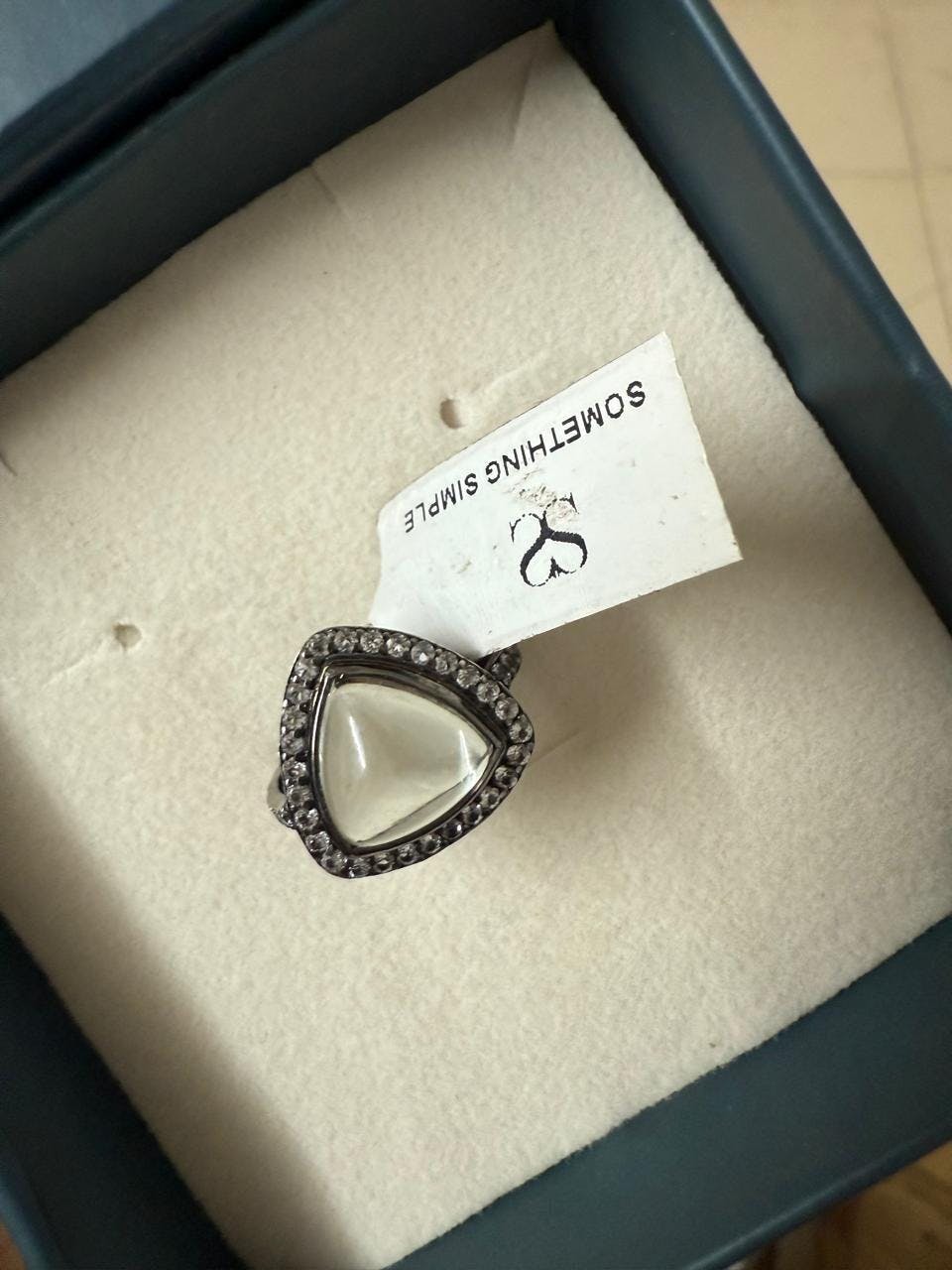 This trillion prasiolite paired with white topaz creates a stunning ring that complements any outfit.